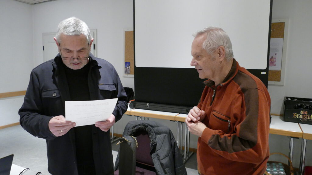 Wie auf der Mitgliederversammlung am vergangenen Freitag beschlossen, haben wir im Rahmen unseres Montagstreffens Friedrich Klock zum Ehrenmitglied ernannt.